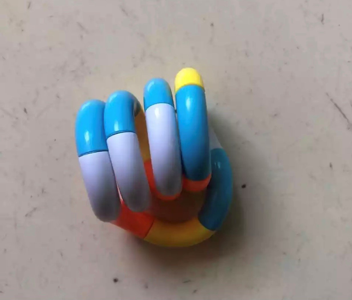 Mit seinem praktisch, handlichen Format passt sich dieser Tangle wunderbar der Hand an. Die bunten Farben des Tangles und die angenehmen Oberfläche machen ihn zu einem faszinierenden Beschäftigungs- und Fördermittel für die Stresstherapie.
